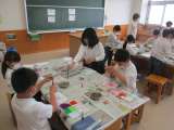 2年生は図工の勉強です。 1組は粘土で作品作り、2組は自己紹介カードを書きました...