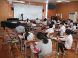 今日は体育館で交通安全教室をしました。 津山市役所の環境生活課の方に来ていただき...