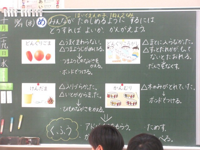 1年生は11月27日にやよい保育園との交流会を予定しています。保育園の子どもたちに楽しんでもらうためには「どんなことをすればよいうか」「どんなことに気をつけたらよいか」といったことをみんなで考えながら、1年生が準備を進めています。当日は頼れるお兄さんお姉さんとして活躍してくれることでしょう!