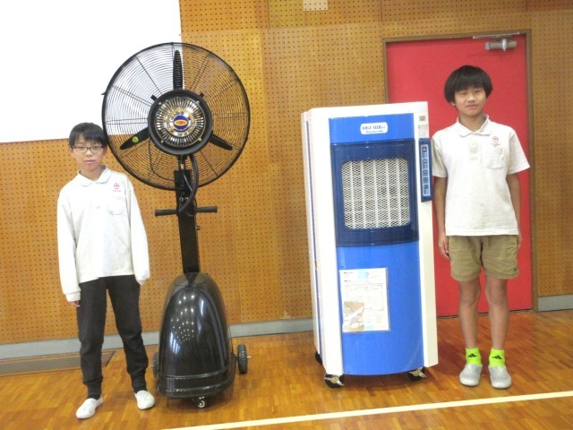 今年度、本校が45周年を迎えるということで、有限会社 永禮産業 様より熱中症対策として大型気化式冷風機と大型ミスト扇風機を寄附していただきました。本日(11/4)はその贈呈式を代表取締役:永禮恭司 様をお招きして行いました。式の中で永禮様は、ご自身も鶴山小学校の卒業生であり創立当時は5年生であったこと等にも触れながら、近年の異常気象で猛暑が毎年続く状況が予想されるなか、子どもたちの熱中症対策と健康管理に役立ててほしいとメッセージを送って下さいました。永禮様、この度は本校児童のために高額な物品を寄贈していただき誠にありがとうございました。末永く大切に使わせていただきます!