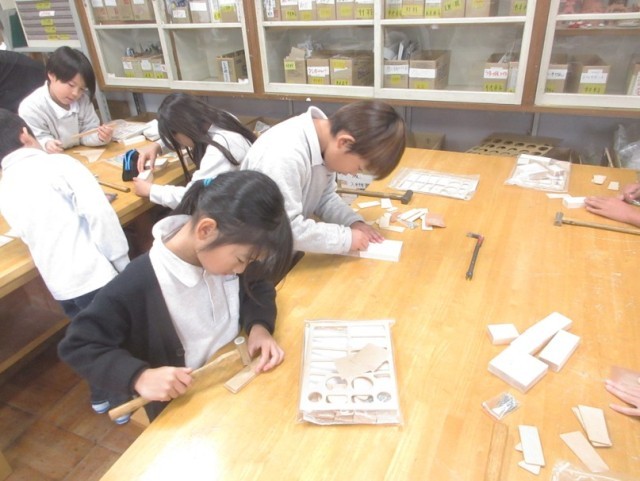 図工で釘打ち(3年生)