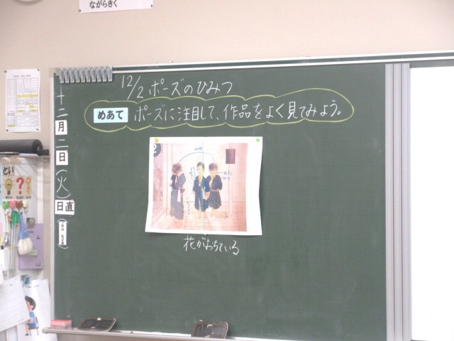 4年生の図工の時間、絵画作品を鑑賞し、感じたことや考えたことを発表するなかで、作者の作品に込められた思いに対する自分の思いや感じ方、そして他者との感じ方の違いについて新たな気づきや視点を取り入れていく授業が行われていました。芸術に対するそれぞれの感じ方は人それぞれ自由であり正解はありません。だからそ、気づかなかった物事のとらえ方を知ることができたり、新たなアイディアが沸いてきたりして楽しいのだと思います。子どもたちには、これからも柔軟で多様な考え方・感じ方を自由に表現できるようになってほしいと思っています。