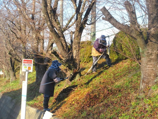 本日は早朝よりシルバーボランティアの皆様が運動場周辺の落ち葉取りや草刈りをして下さいました。寒い中大変お世話になりました。