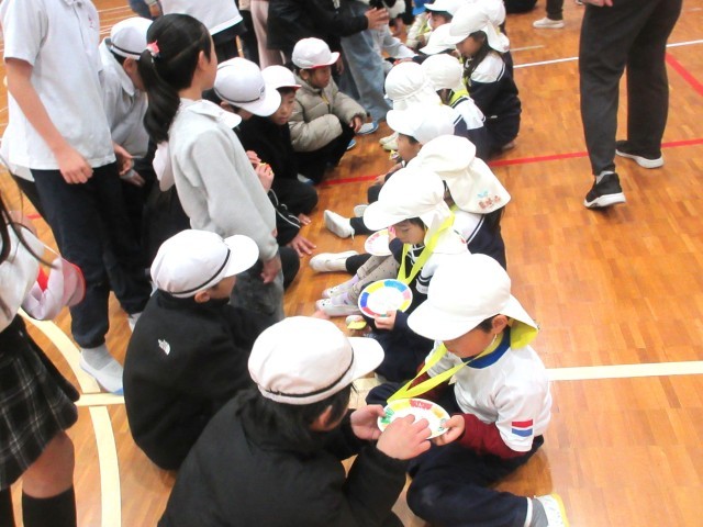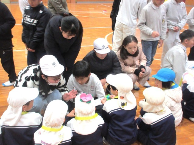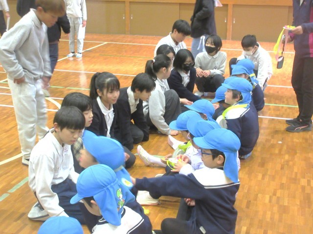 先日、つやま東幼稚園年長児との交流会を行いました。会の運営を行い、お世話してくれたのは5年生でした。園児たちを楽しませるために、みんなで体を動かしてできる簡単なゲームを考え、プレゼントも準備してくれていた5年生でしたが、当日もお兄さんお姉さんらしく立派にお世話をしてくれました。頼もしい5年生の様子に、来年度鶴山小のリーダーとしての自覚が備わってきているなあと嬉しく思った交流会でした。