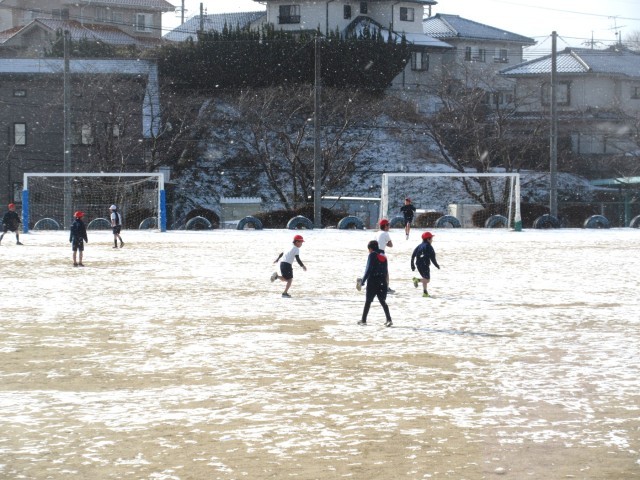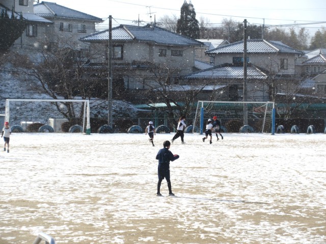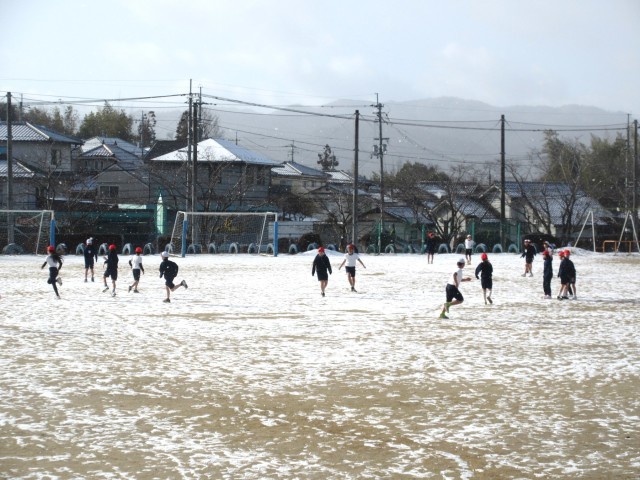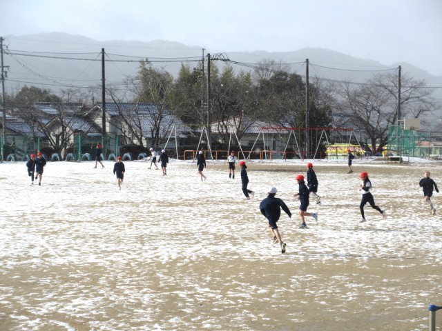 ここ数日、寒い日が続いています。今朝も運動場はうっすらと雪化粧をしていました。そんな中でも子どもたちは本当に元気です!雪の舞い散る中、4年2組は体育で運動場を元気に走り回っていました!