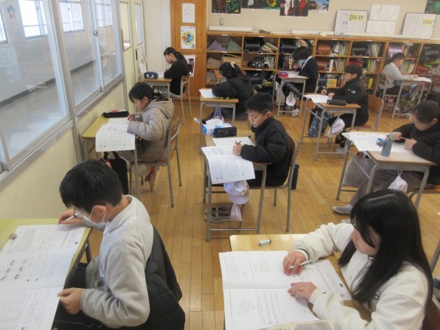 5年生は来年度6年に進級後すぐに全国学力学習状況調査を受けることになります。そこで本日(2/13)4月の学力調査に向けて、過去の調査問題を活用したプレテストを実施しました。かなり難しい問題もあったと思いますが、子どもたちは最後まであきらめずに頑張っていました。今回の結果をもとに個々の課題を再確認し、4月までに少しでも課題の克服を図ることができれば考えています。