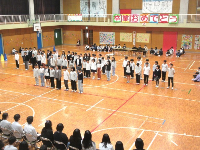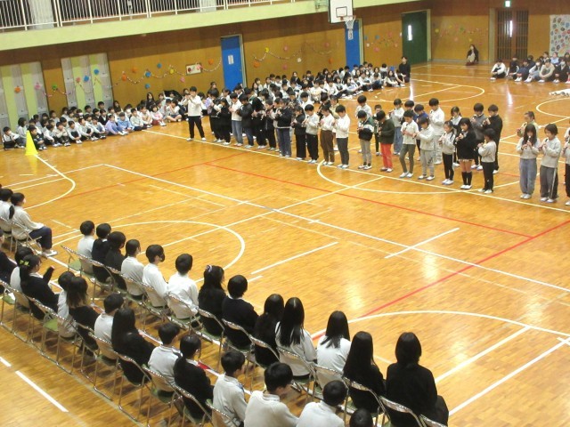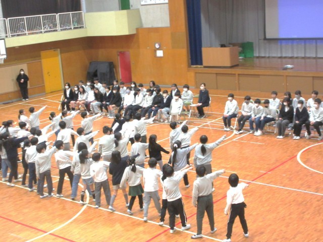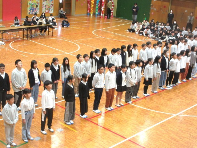 2年生は集団で足を踏み鳴らしたり、手振り身振りを加えたりしながら大きな声で6年生に熱いメッセージを送っていました。3年生はリコーダー演奏、4年生は歌でそれぞれ綺麗なメロディーとハーモニーを6年生に届けました。