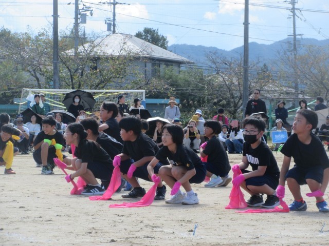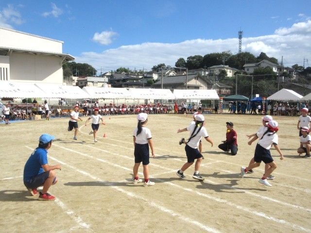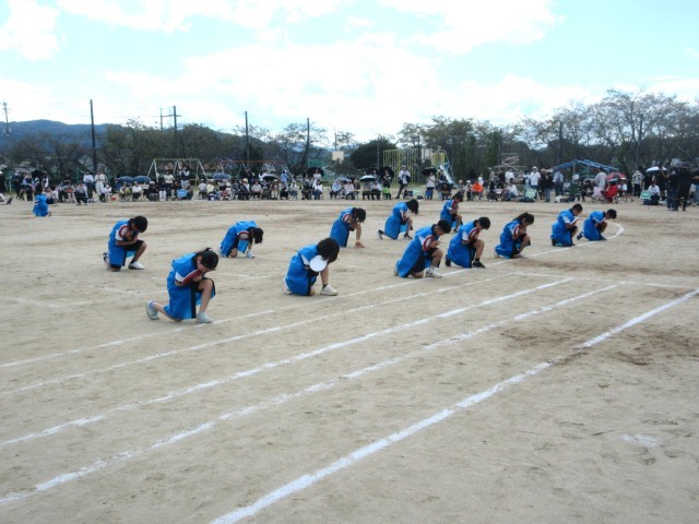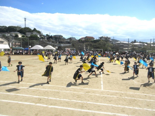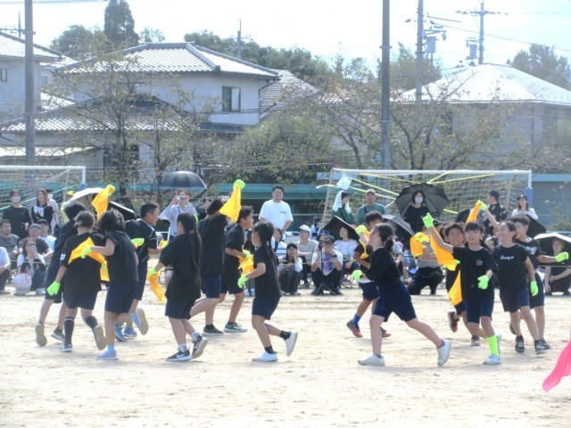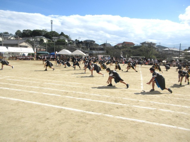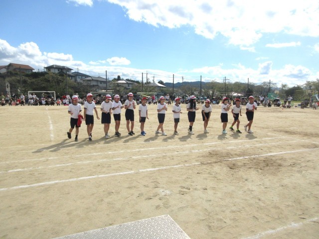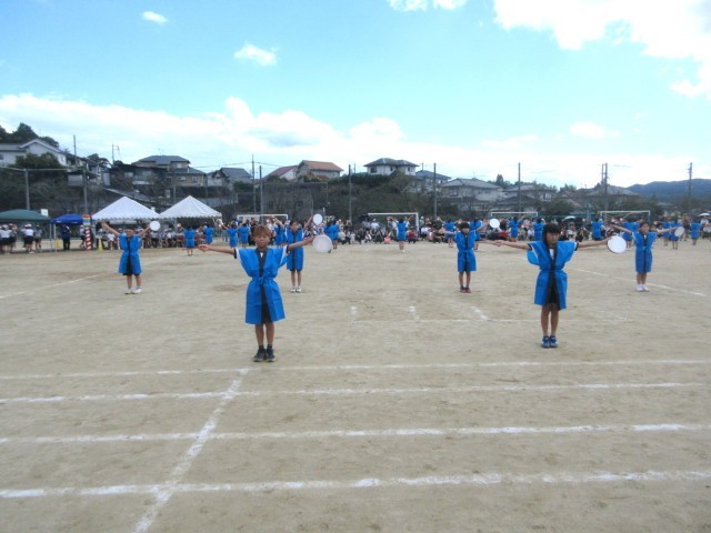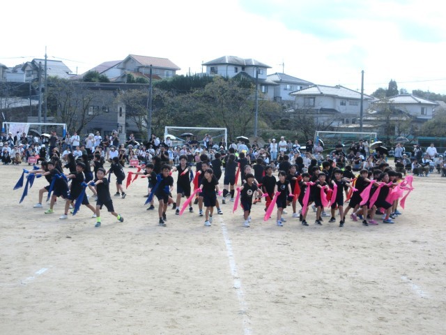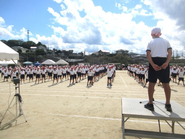 10/5(日)鶴山小学校運動会を無事に開催することができました。保護者や地域の皆様には色々とご協力いただき、大変お世話になりました。開会式の様子です。