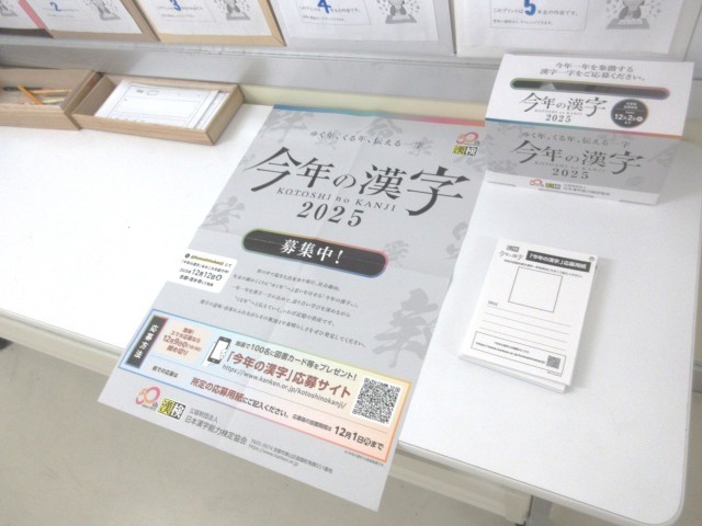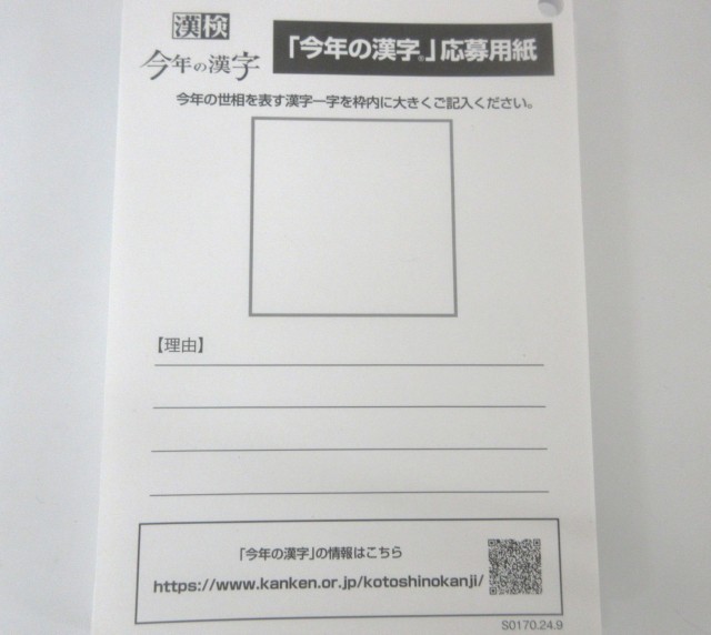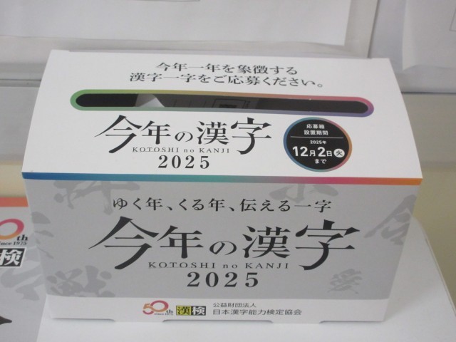 このたび日本漢字能力検定協会より「今年の漢字~この1年を象徴する漢字~」の募集がありましたので、早速職員室前の机に設置してみました。ご家庭でお子さんと今年を振り返り、この1年を象徴する漢字を一緒に考えてみるのはいかがですか?