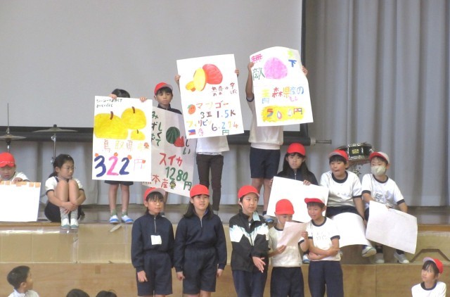 3年生の学習発表会の練習を覗いてみました。社会や総合の時間でスーパーマーケットの仕事や工夫について学んだことを発表し、その流れでスーパーに置いている食材にちなんだ曲『パプリカ』の合奏にうつっていきました。3年生の持つ力強いエネルギーが上手に表現できるといいですね。本番が楽しみです!
