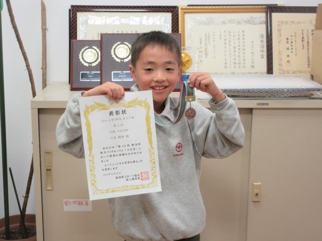 11/26(水)3年生の川島健新さんが校長室を訪れ、11/23(日)に開催された『第48回和気町体力づくりロードレース大会』の出場報告をしてくれました。川島さんは、出場した2Km 小学生3年生男子の部で何と第3位になったそうです!お兄さんと一緒に陸上を習っているそうで、兄弟ともにこれからが楽しみです!校外で活躍する鶴山小の子どもたちの知らせを受けると学校としても本当に元気が出ます!今後も校内に留まらず、様々な地域に出て、様々な自分の得意分野をで輝いてくれることを願っています!