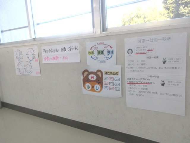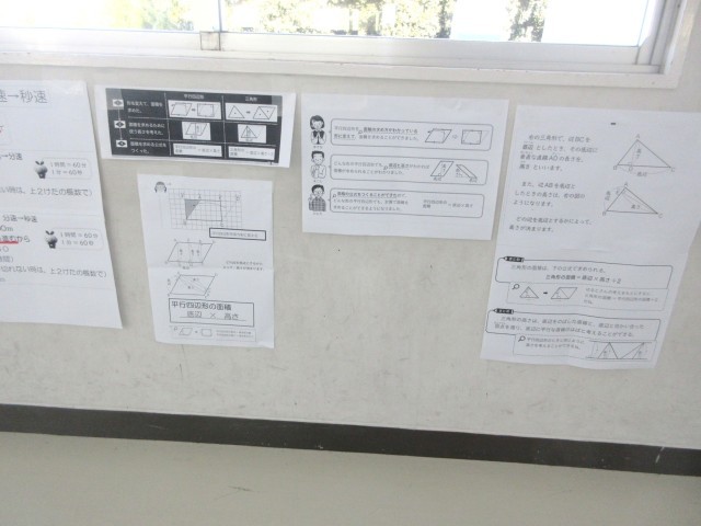 5年生の算数では、「割合」の学習のまとめ問題をやっていました。この割合については「○割引きとは、△%引きのことですか?」といった大人になると日常で当たり前のように使う考え方を扱う大切な学習でもあり、先生も子どもたちも真剣に問題に向きあっていました。以前、本校の学力調査での課題は算数であると学校だよりでもお伝えしましたが、5年生の廊下や教室には、算数の学習で大切な内容(見方・考え方)を振り返ることができるよう工夫された掲示物が貼られています。その学年の学習内容をとりこぼすことなく、少しでも多く身につけて次の学年に進んでいってほしいと先生たちも子どもたちの学習支援に頑張っています!