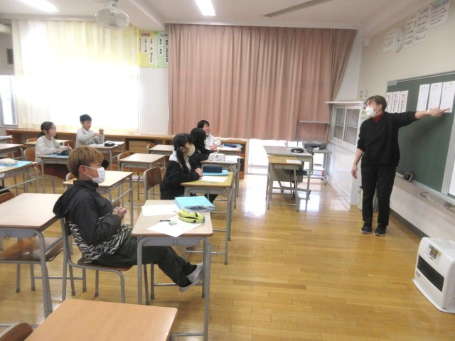 1/23(金)5校時目に中道中学校からの児童向けオンライン入学説明会がありました。子どもたちが抱く「中学校とはどういうところか」といった思いに対し、中学校の生徒指導の先生や生徒会のメンバーたちが、学校生活の決きまりや1年間の流れ、部活動などについて丁寧に説明をしてくれました。6年生たちは、メモを取ったり、冊子に目を通したりしながら、来たるべき中学校生活へのイメージを膨らませていました。