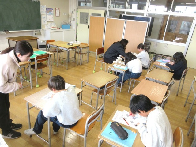 3-2の書写の時間の様子です。子どもたちは少しでもお手本に似せて書こうと、真剣に毛筆習字に取り組んでいました。