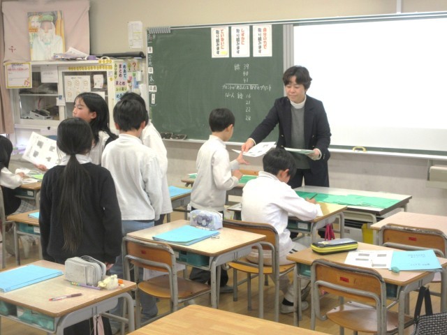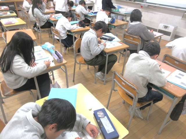 5年生の算数では、「割合」の学習のまとめ問題をやっていました。この割合については「○割引きとは、△%引きのことですか?」といった大人になると日常で当たり前のように使う考え方を扱う大切な学習でもあり、先生も子どもたちも真剣に問題に向きあっていました。以前、本校の学力調査での課題は算数であると学校だよりでもお伝えしましたが、5年生の廊下や教室には、算数の学習で大切な内容(見方・考え方)を振り返ることができるよう工夫された掲示物が貼られています。その学年の学習内容をとりこぼすことなく、少しでも多く身につけて次の学年に進んでいってほしいと先生たちも子どもたちの学習支援に頑張っています!