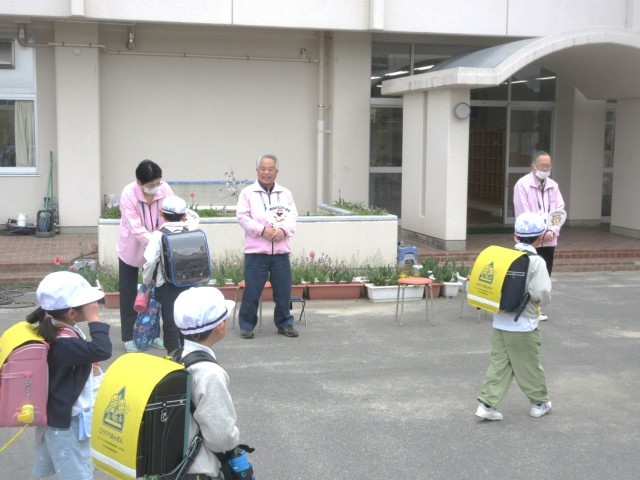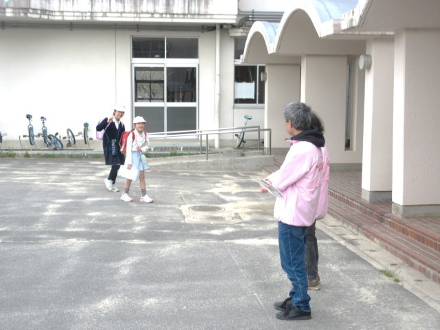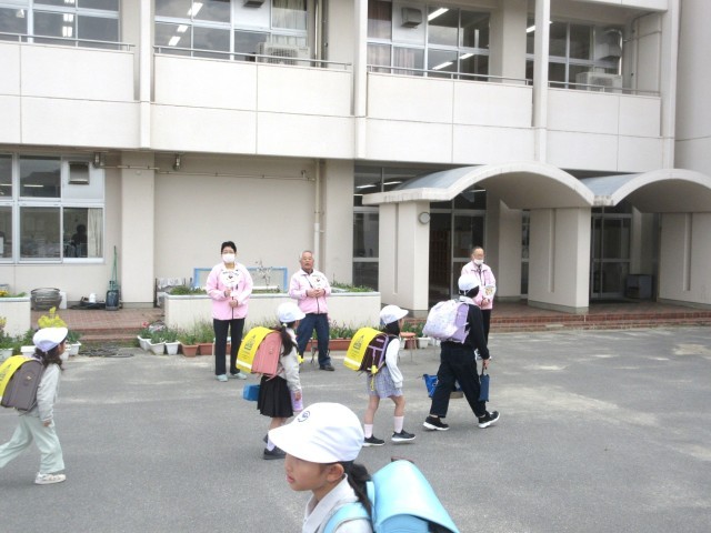 4/13(月)民生児童委員の皆様によるあいさつ運動がありました。委員の皆様は4月より一新されたピンクのジャンパーに身を包み、登校してくる子どもたちに笑顔で「おはようございます!」声をかけて下さっていました。今年度もどうぞよろしくお願いいたします。