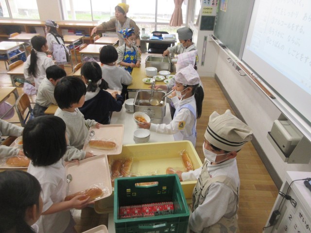 今日は、今年度の給食最終日でした。給食の食器・食缶を返却する際に、各学年から給食支援員の先生方に対する「ありがとうございました」の大きな声が、配膳室前の廊下に響き渡っていました。給食支援員の先生方、1年間大変世話になりました!ありがとうございました!