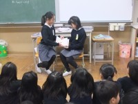 図書委員の児童が1・2年生を相手に読み聞かせを行いました。聞いている人に気持...