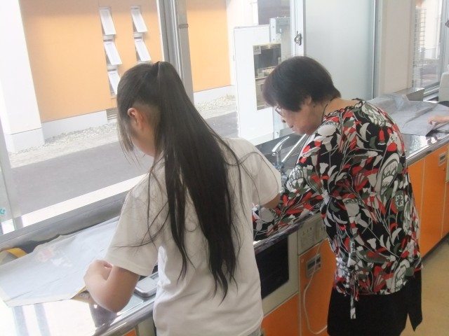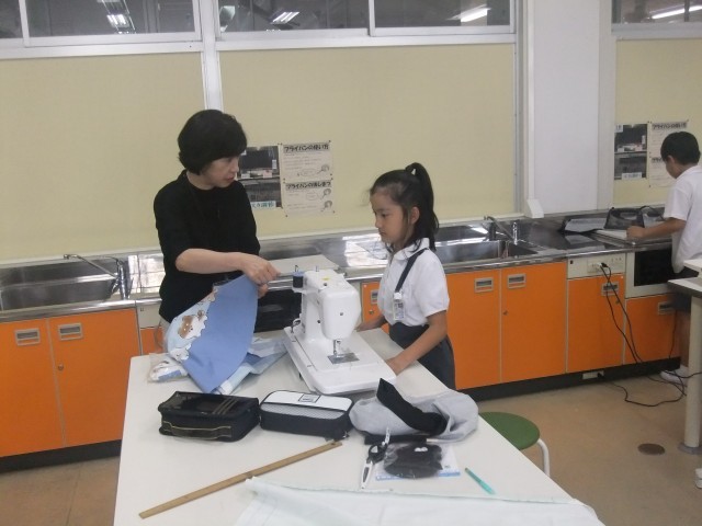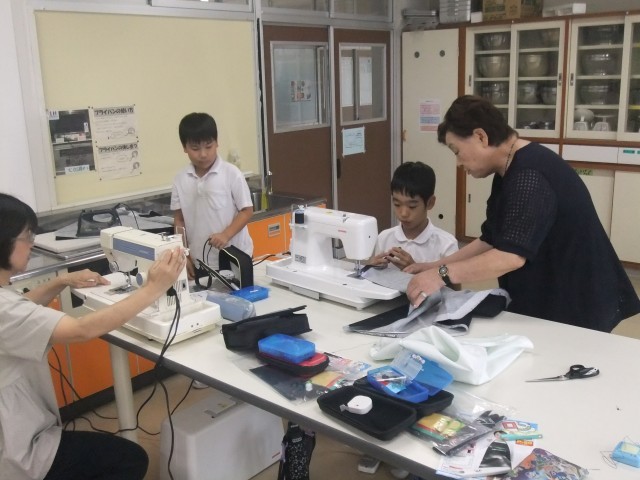 5年生の家庭科での裁縫を、地域のボランティアの方々が手伝いにきてくださりました。