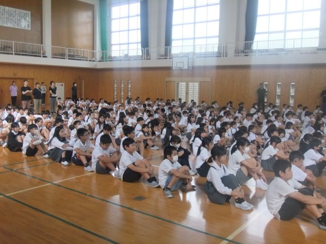 不審者についての避難訓練がありました。スクールサポーターの方に協力していただき、もしもの時の為に備えることができました。児童たちは、担任の指示を真剣に聞き、すばやく行動できていました。この真剣さが、命を救うのだと思います。また、体育館での話も真剣に聞くことができており、最後まで気を抜かず訓練に取り組めていました。