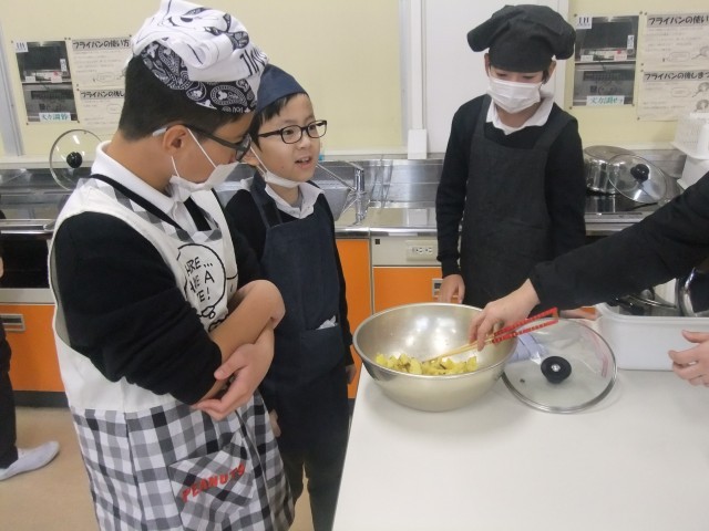 様子を見に行ってみると、和気あいあいな雰囲気で蒸しパン、ふかしいも、大学いもなどを調理をしていました。