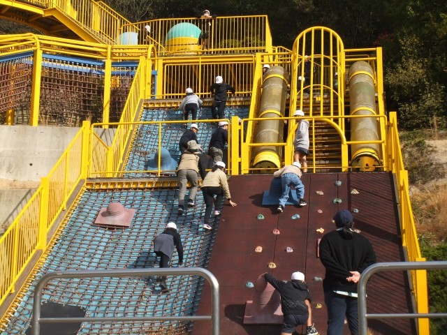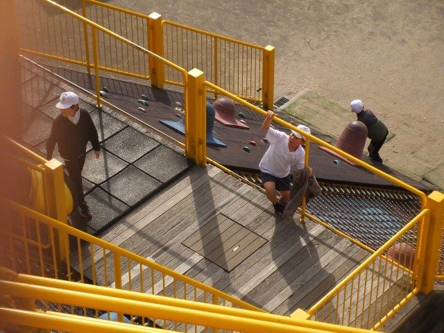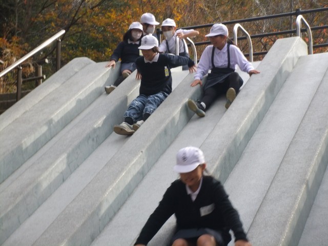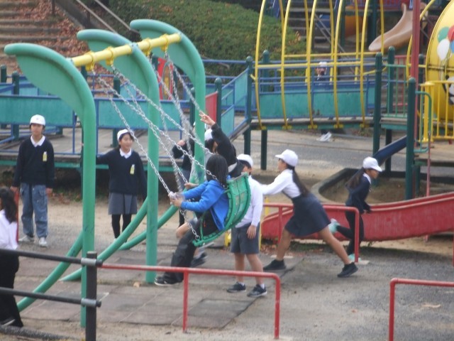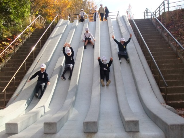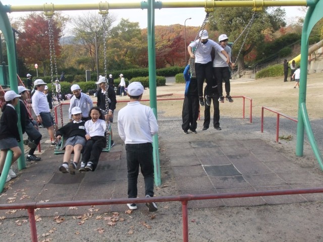 午前中は中山公園冒険広場で活動しました。広い自然の中で、アスレチックやすべり台で楽しく体を動かしました。また、お弁当タイムでは気持ちの良い自然の中でおいしく食べることができました。
