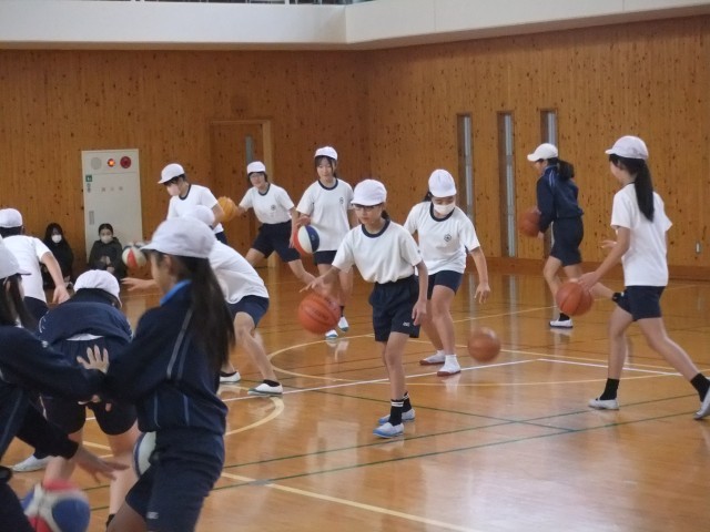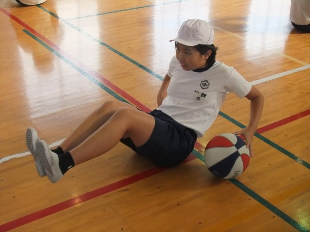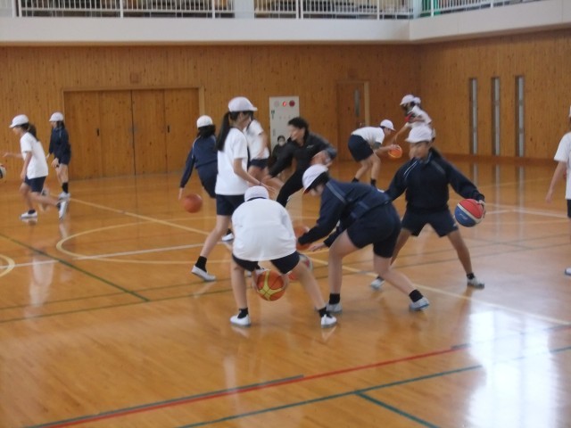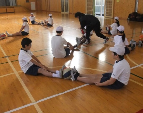 ボールを使ったストレッチから、実際にバスケットに使える動きを教えてもらうことができ、子どもたちは笑顔で取り組むことができていました。