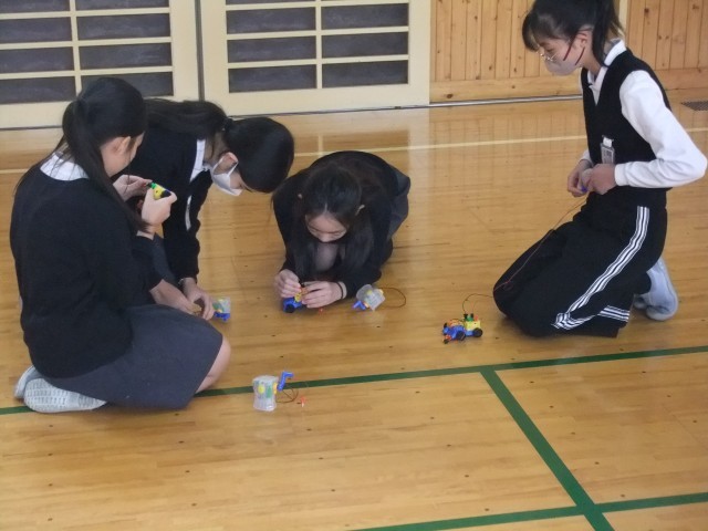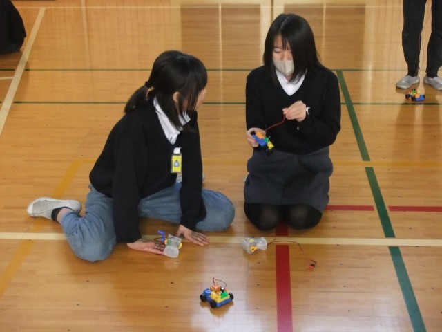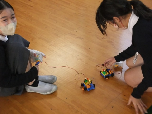 その学習の最後に、学習してきたことを活かしてコンデンサーを利用したモーターカーを作って走らせました。