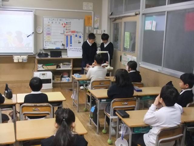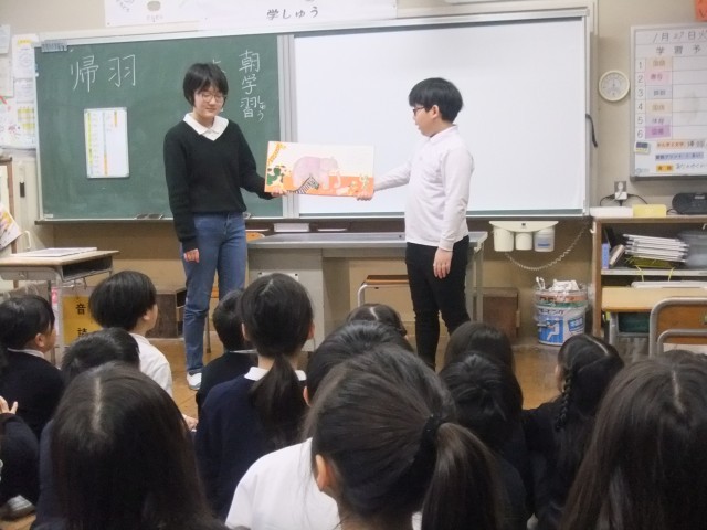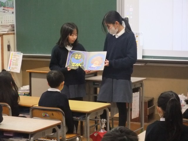 図書委員の児童が1・2年生を相手に読み聞かせを行いました。