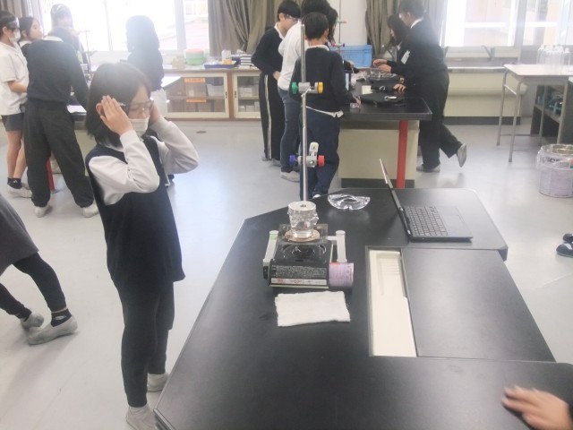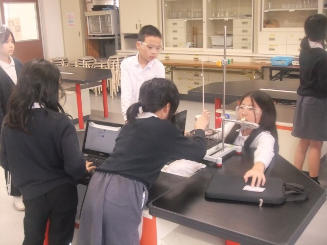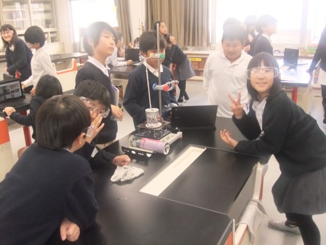 理科では、水を温めたときの温度の変化を調べる実験を行っていました。みんなで協力して、観察・記録をすることができていました。