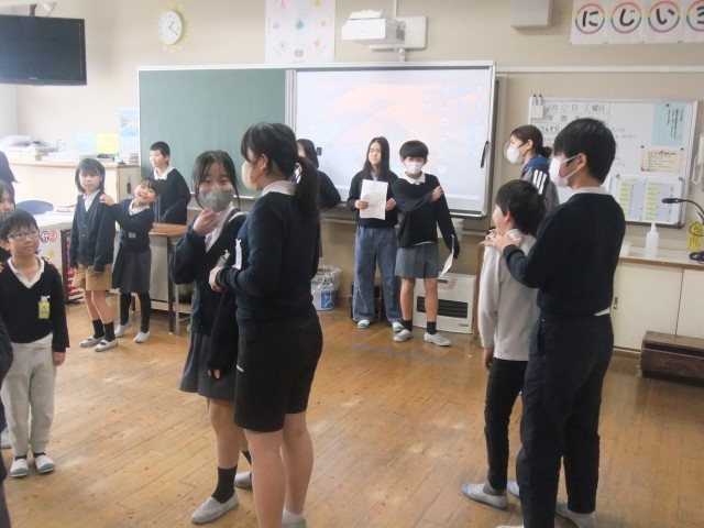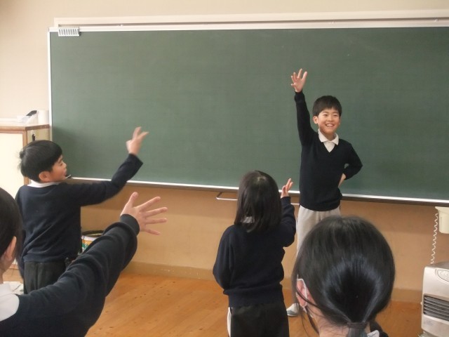 今日は弥生タイムがありました。今日は今まで弥生タイムを引っ張ってきた6年生が見守る中、5年生が企画した弥生タイムを実行しました。