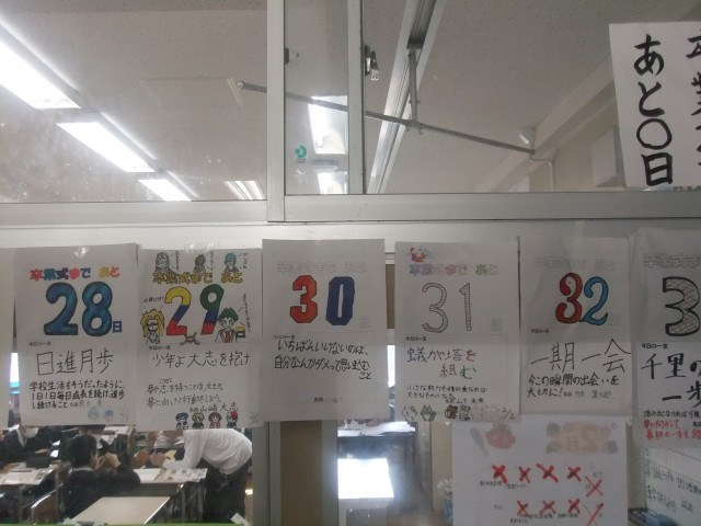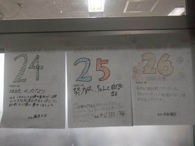 6年生教室の前で、卒業までのカウントダウンがされていっています。