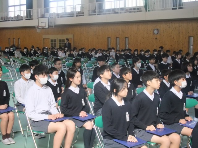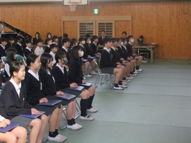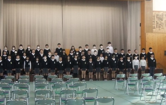 5年生も、卒業生への感謝の気持ちを込めて、姿勢や歌声などを意識して参加しました。体育館には、卒業式本番に向けた温かな雰囲気が広がっていました。