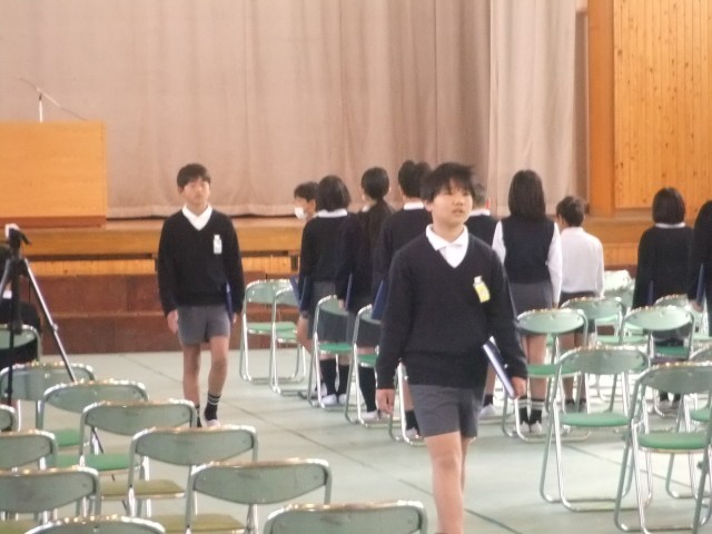 当日の流れに沿って、入退場や証書授与、呼びかけなどを一つ一つ確認しながら練習しました。6年生は少し緊張した様子も見られましたが、これまでの学校生活を振り返りながら、真剣な表情で取り組んでいました。