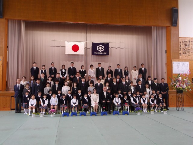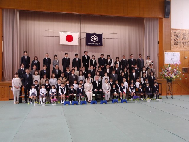 当日は春のやわらかな陽ざしに包まれる中、新一年生75名が元気に入学しました。