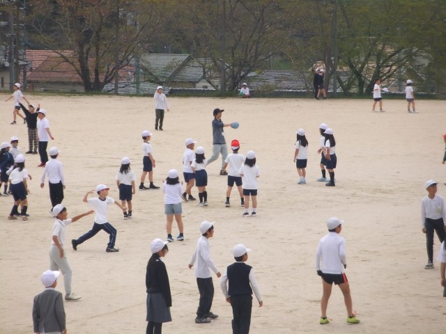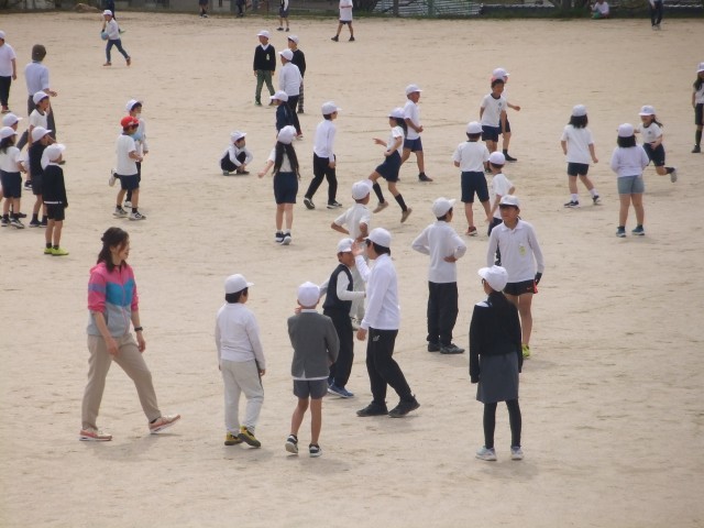 新しい友だちや担任の先生と外で遊ぶのが楽しみだった子どもたち、運動場には元気な声が響いていました。