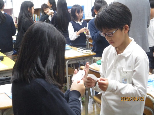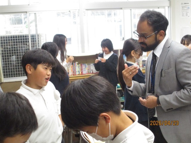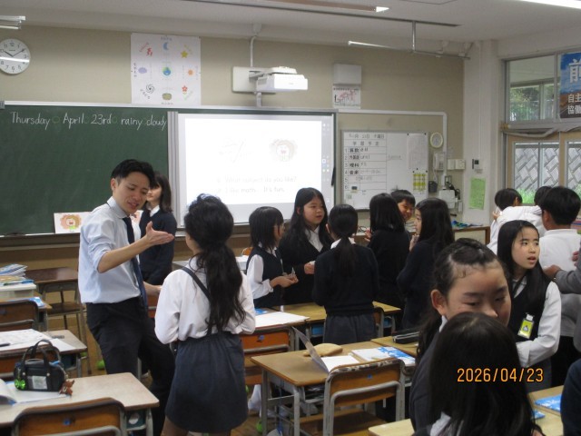 2組は外国語の時間です。学級の仲間と積極的に英語でコミュニケーションを取り、楽しい雰囲気で英語が飛び交っていました。