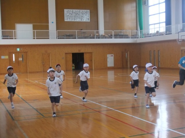 児童たちは、音に合わせて一定のリズムで走り続け、自分の体力に挑戦しました。