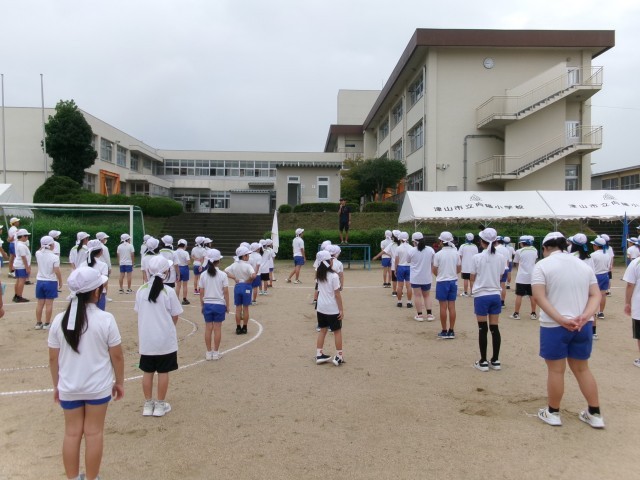 26日(金)の1時間目に、運動会の全体練習をしました。