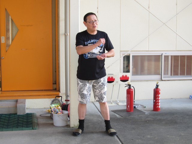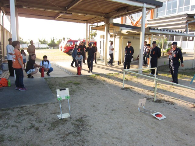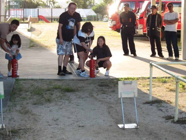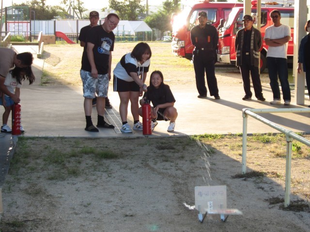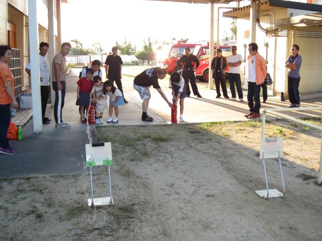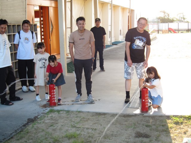 慣れない消火器ではありましたが、子ども達は上手く的に当てて消火ができました。