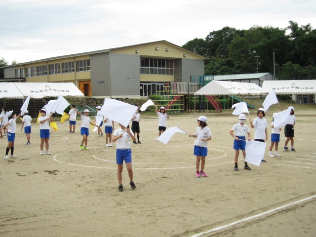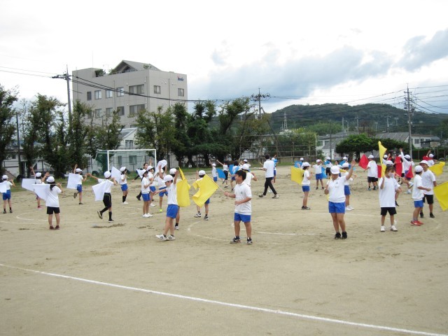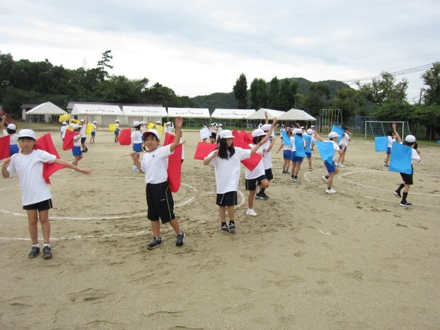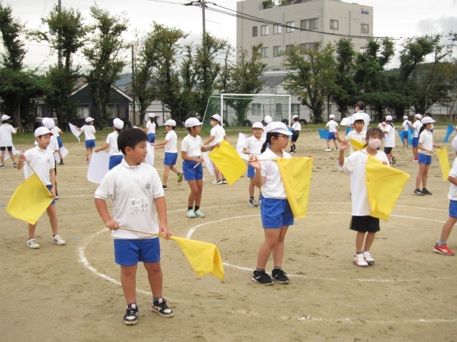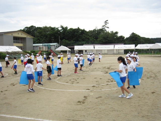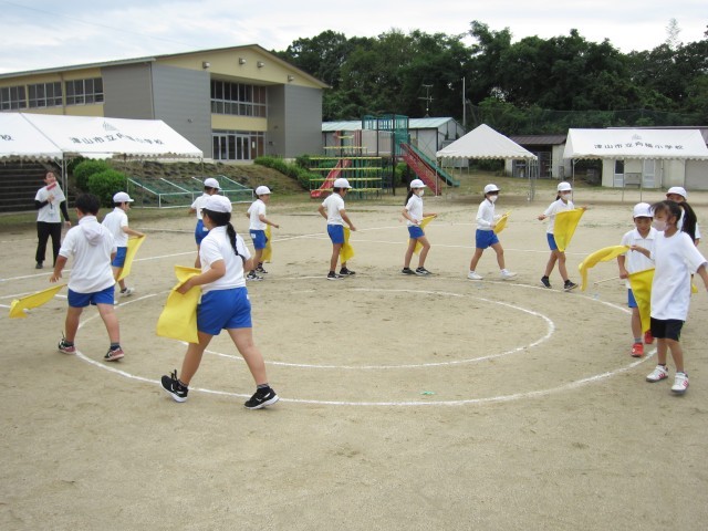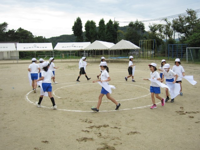 運動場はぬかるんでいましたが、3・4年生は表現の練習をしました。