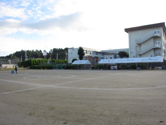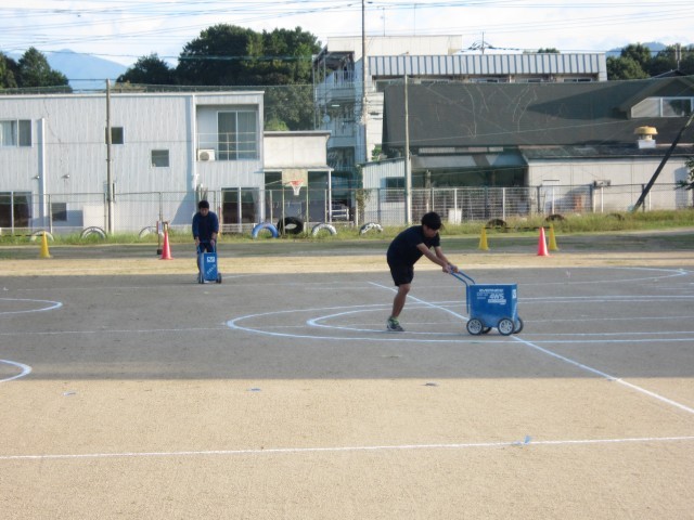 運動場の水取りとサッカーゴールの移動を終えて、運動会の準備をしました。