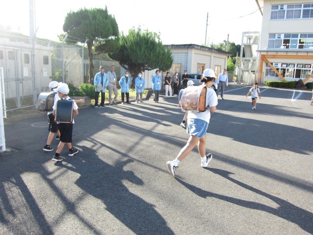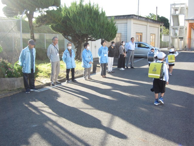 毎月10日のあいさつ運動に、民生委員の方々、3・4年生の保護者、本校運営委員会の児童が参加してくれました。