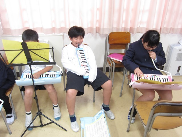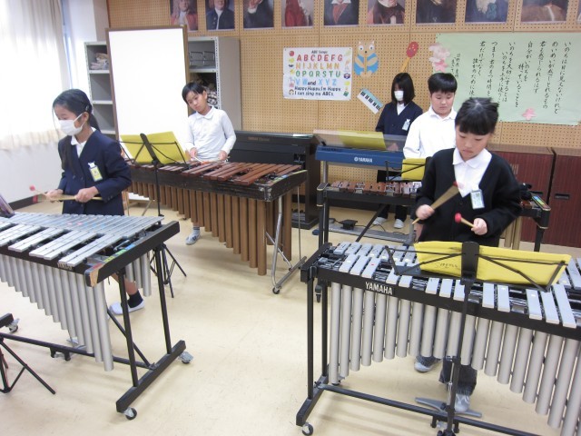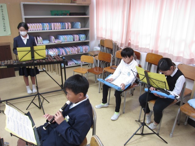 4年生は、音楽の時間に学習発表会の合奏の練習をしています。