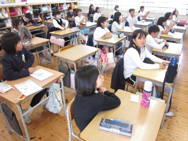 3年生は、戸島給食センターの先生をお招きして食育指導がありました。