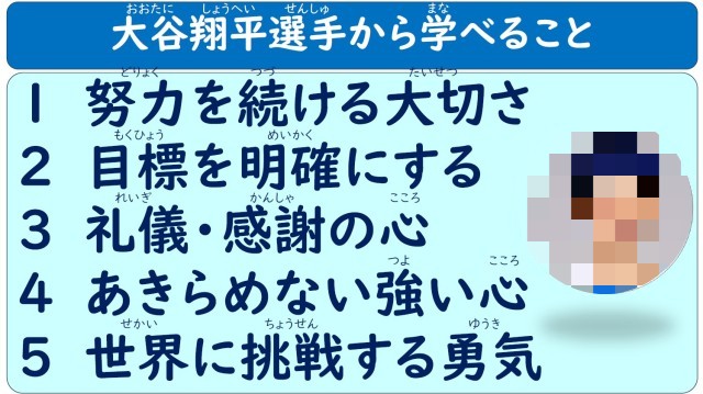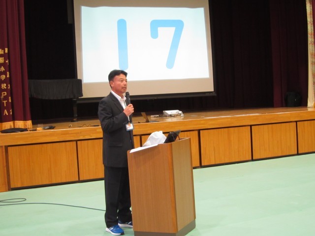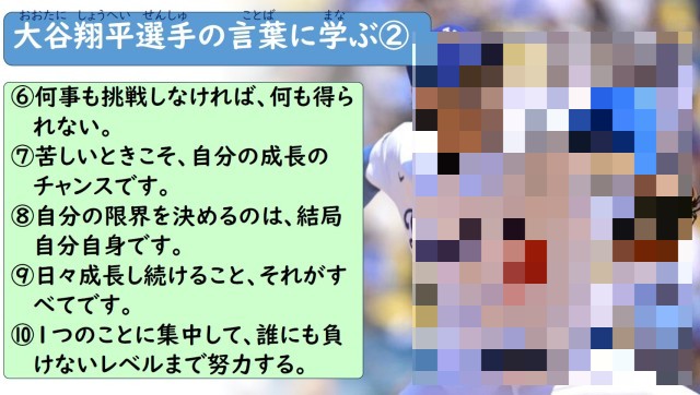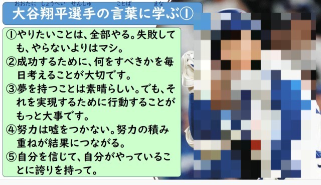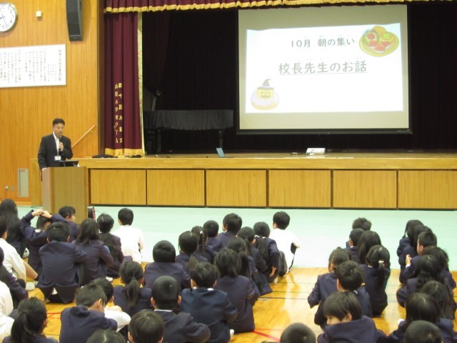 学校長からのお話は、現在、大リーグのワールドシリーズ活躍中の「大谷翔平選手」のことについてお話をしました。