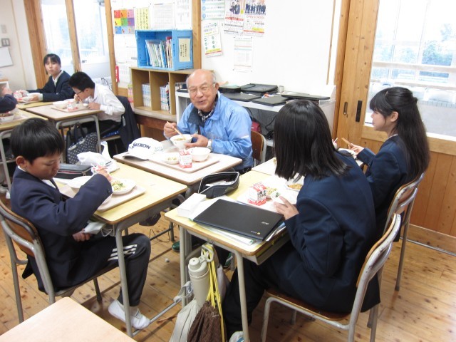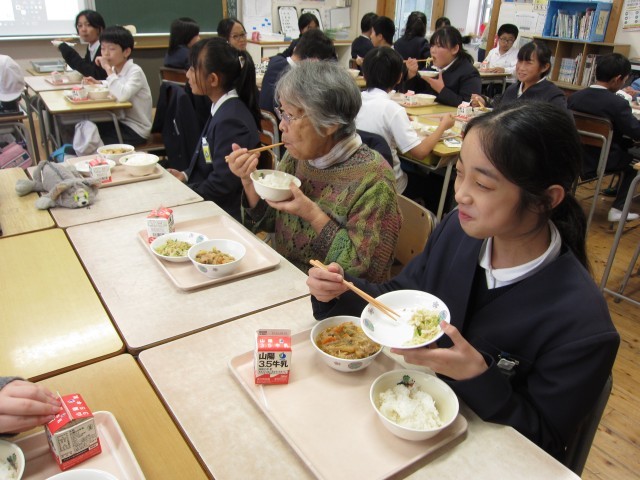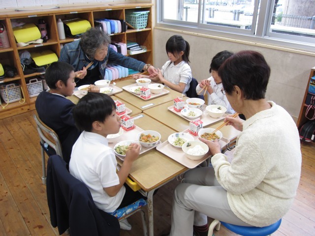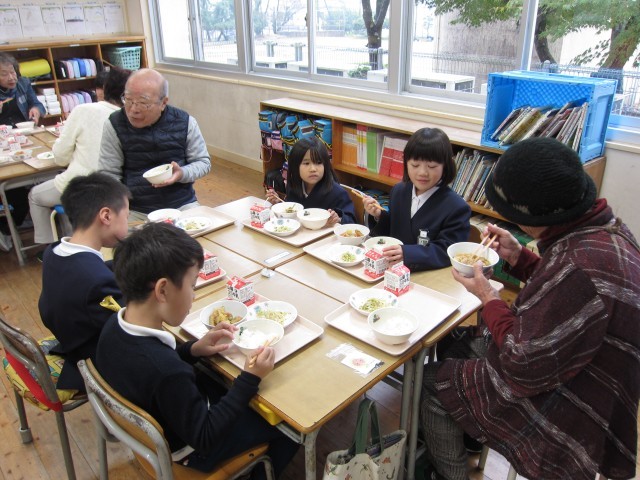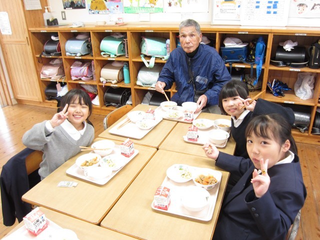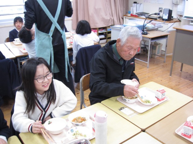 昔遊び交流会に続き、全校で給食交流会をおこないました。