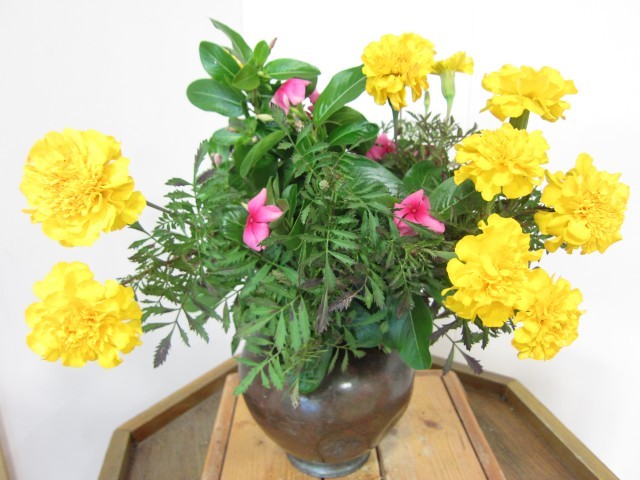 玄関の掲示板や花台には、秋らしい掲示・展示がなされています。