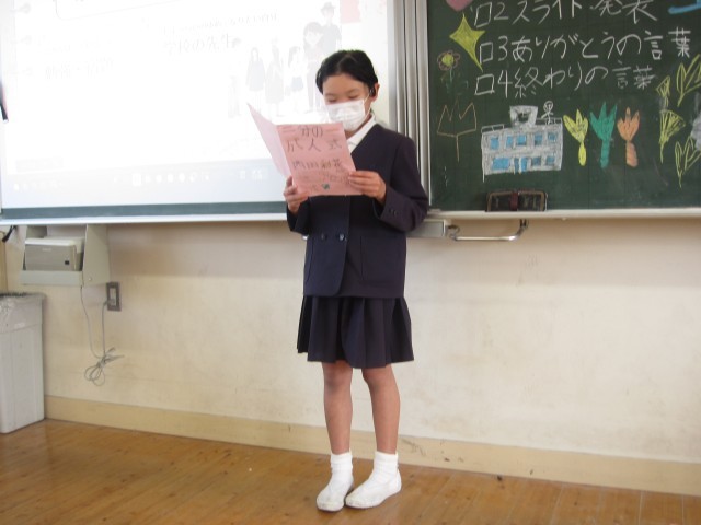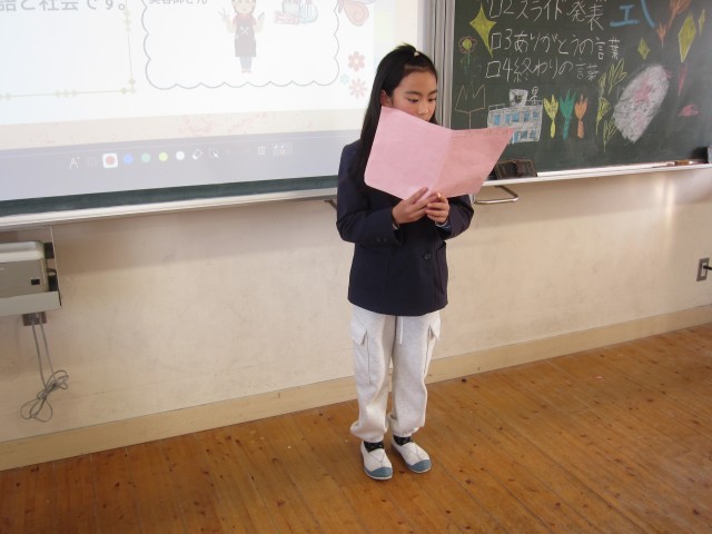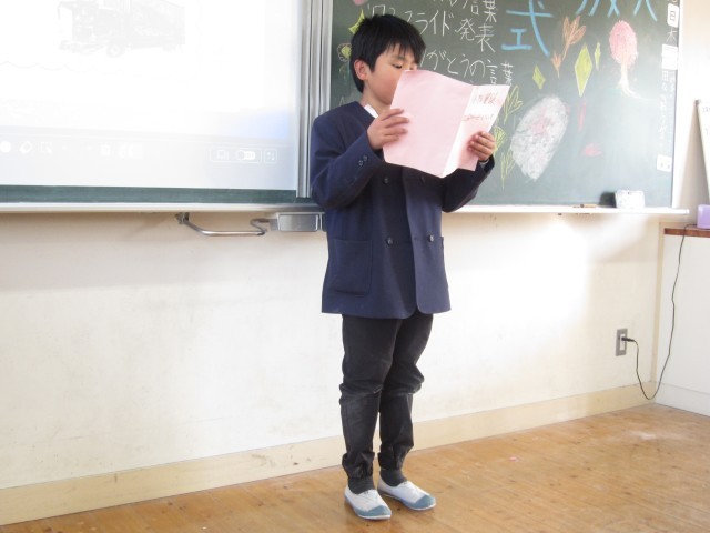 を発表しました。お家の人が聞いて感動・感心する内容でした。