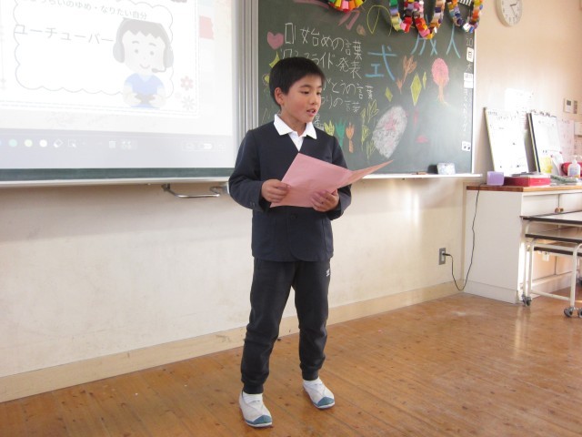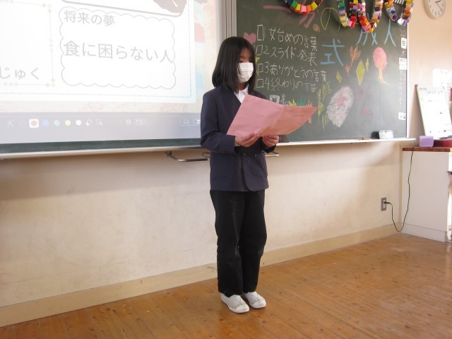 4年生は、保護者参観のもと、「二分の一成人式」をおこないました。